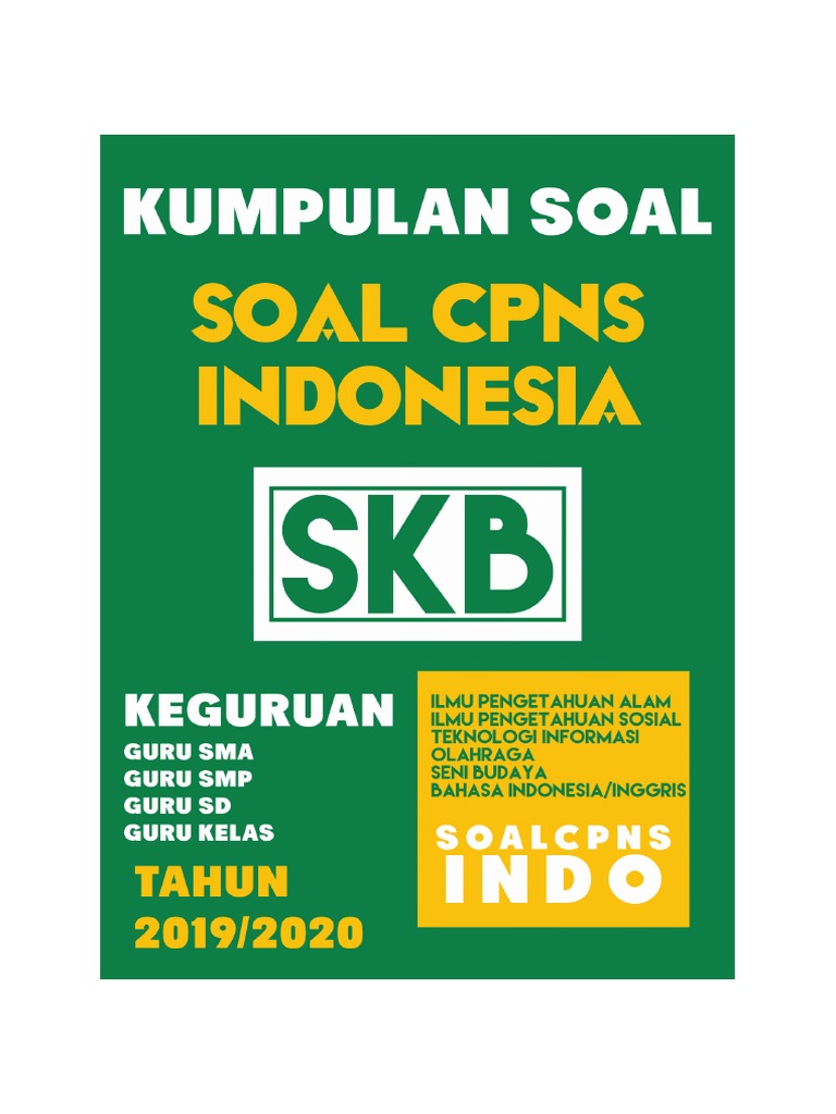 Jual Kumpulan Soal Tes Seleksi Kompetensi Bidang Skb Guru Kelas Sd Kab Bogor Guepedia Tokopedia from images.tokopedia.net Download contoh latihan soal tes skb tkb seleksi cpns guru kelas. Contoh soal cpns 20192020 soal skb guru kelas sd dan pembahasan latihan ujian tes cpns 2020 by icpns posted on february 15 2020 source contoh soal cpns 2020. Secara garis besar ada delapan jenis ujian dalam skb, yaitu computer assisted test (cat), tes potensi akademik, tes praktik kerja, tes bahasa asing. Report 0soal skb guru kelas sddoc please fill this form we will try to respond as soon as possible. Kami juga sudah mempersiapkan kunci jawabannya untuk seluruh soal di bagian akhir artikel. Berikut adalah prediksi soal skb cpns 2020 untuk formasi guru kelas / pgsd. Sehingga, seorang pendidik yang dapat diteladani adalah pendidik yang punya pribadi dan sikap yang baik. Badan kepegawaian negara (bkn) telah menjadwalkan pelaksanaan tes seleksi kompetensi bidang (skb) instansi pusat dan daerah dimulai pada tanggal 25 maret sampai dengan 10 april 2020.